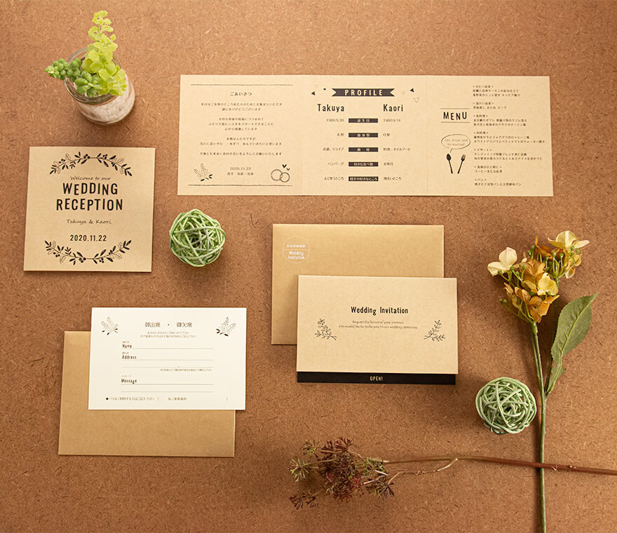 まずは招待状でゲストの皆さんにご案内。オーソドックスなタイプはもちろん、オリジナルデザインまで対応できます。
